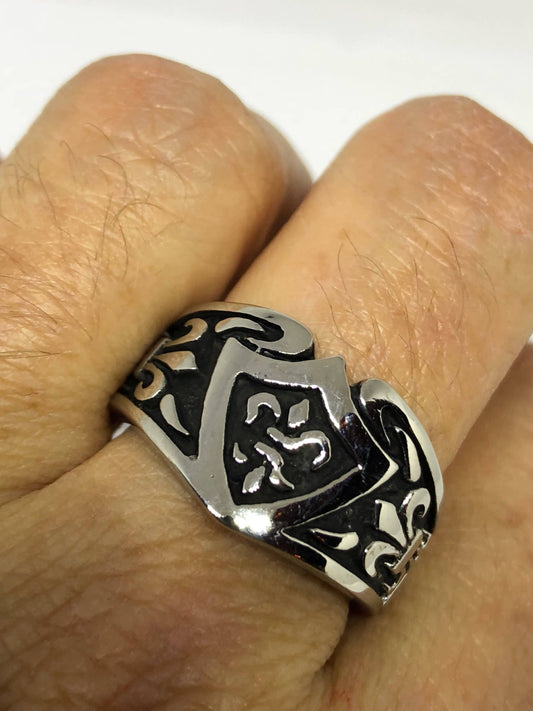 Vintage Gothic Silver Stainless Steel Fleur De Lis Mens Ring