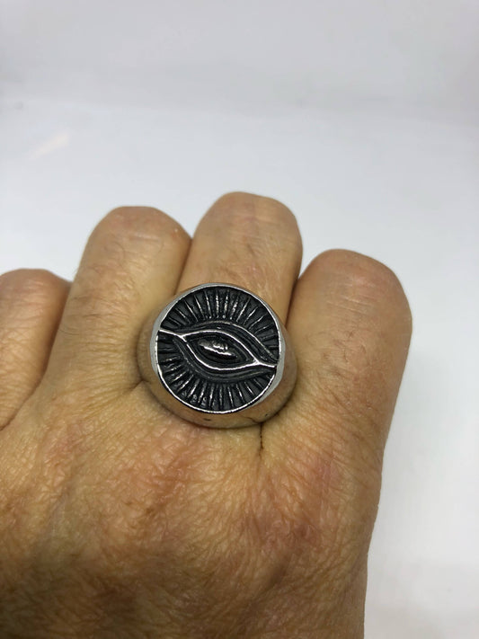 Vintage Gothic Silver Stainless Steel Illuminati Eye Mens Ring
