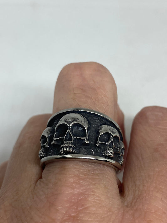 Vintage Gothic Stainless Steel Skulls Catacombs Mens Ring