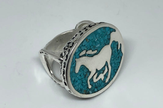 Vintage Native American Style Southwestern Turquoise Stone Inlay Horse Shoe Mens Ring