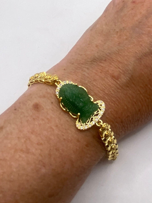 Vintage Gold Unisex Mens Green Jade buddha Bracelet