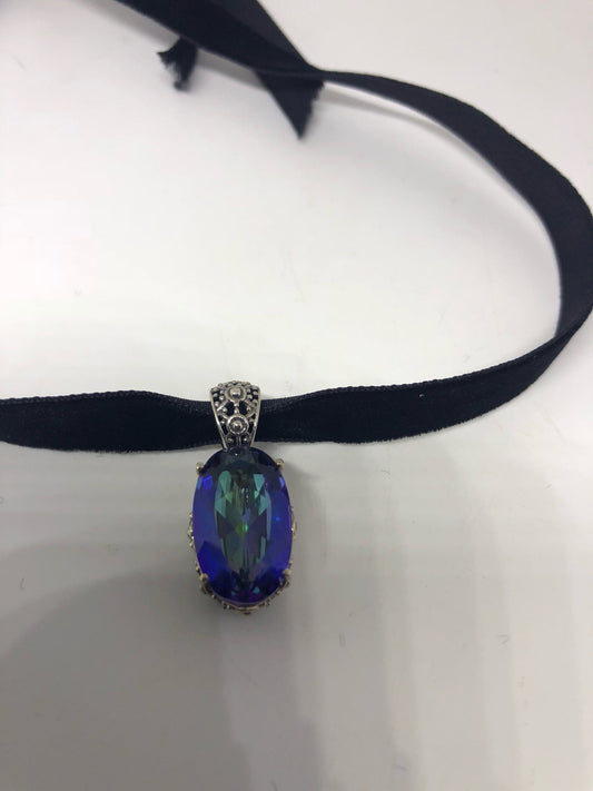 Vintage Genuine Deep Blue Mystic Topaz 925 Sterling Silver Necklace Pendant