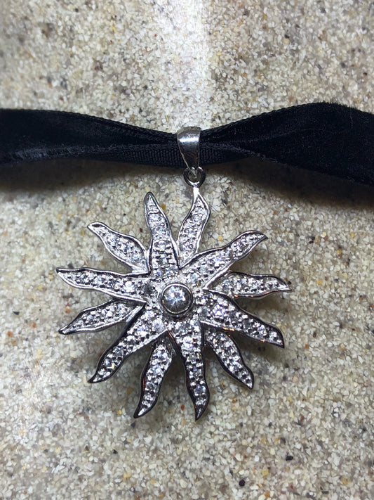 Vintage White Sapphire 925 Sterling Silver Deco Dangle Pendant Necklace