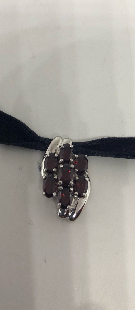 Vintage 925 Sterling Silver Red Garnet Choker Pendant Necklace