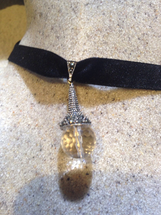 Vintage Handmade Turkish Ottoman Styled "Y" Necklace, Sterling Silver Marcasite Clear Quartz Choker