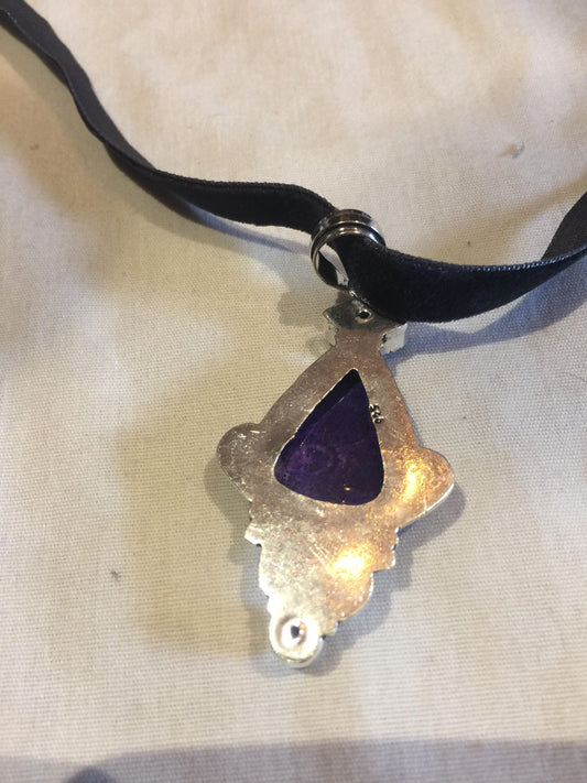 Blue Handmade Gothic Styled Silver Finished Genuine Iolite and Sujalite Choker Necklace