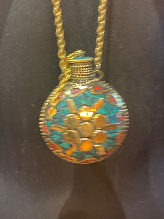 Vintage Perfume Oil Bottle mosaic Inlay Gemstone Pendant Necklace