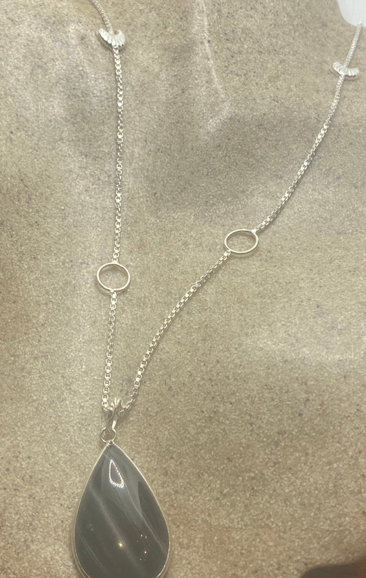 Vintage Black Agate Silver Bronze 23 inch Necklace Choker