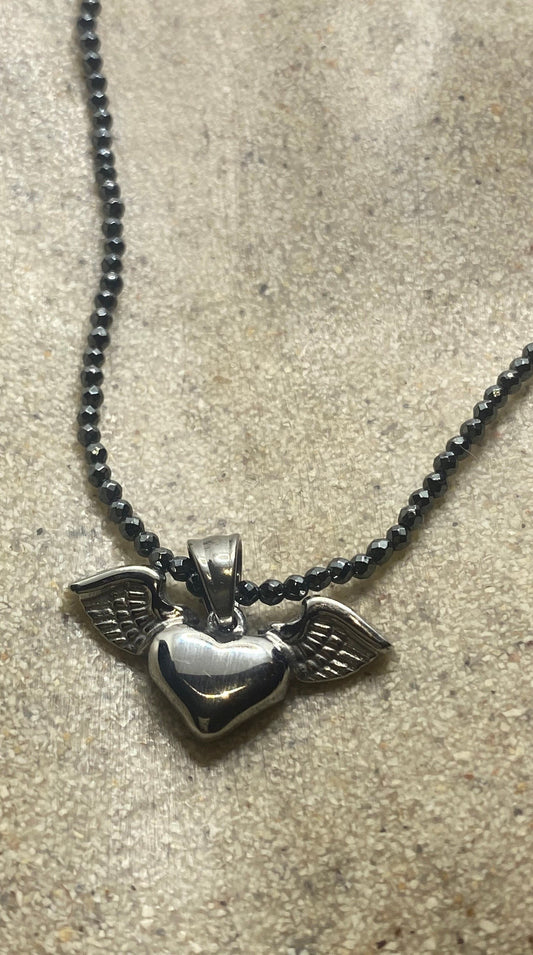 Vintage Faceted Hemetite beaded 30 inch Necklace