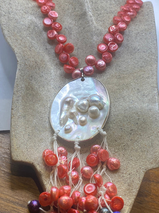 Vintage Magenta Pink Genuine Fresh Water Pearl Necklace 16 inch
