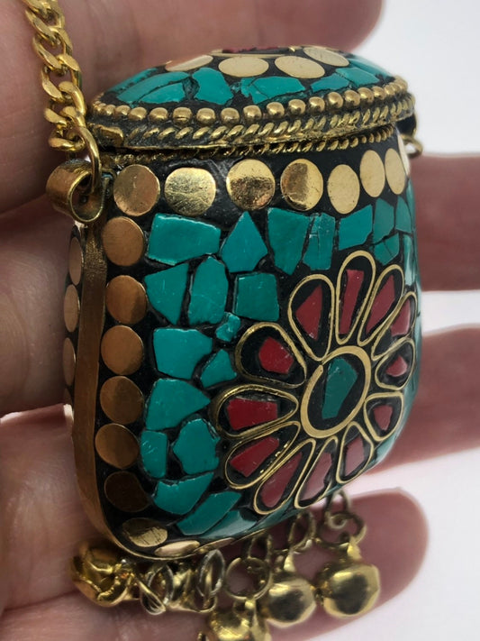 Bronze Mojo Bag Handmade Vintage Mosaic Gemstone Pendant Necklace
