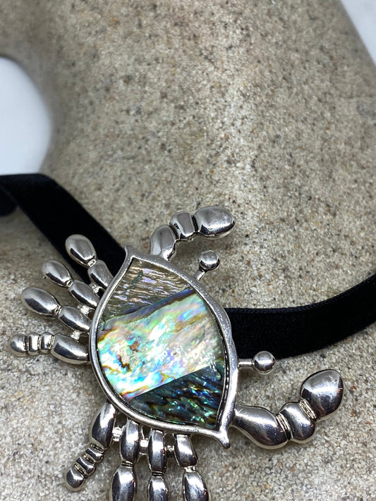 Blue Handmade Gothic Styled Silver Finished Genuine Abalone Sea Crab cancer Choker Necklace