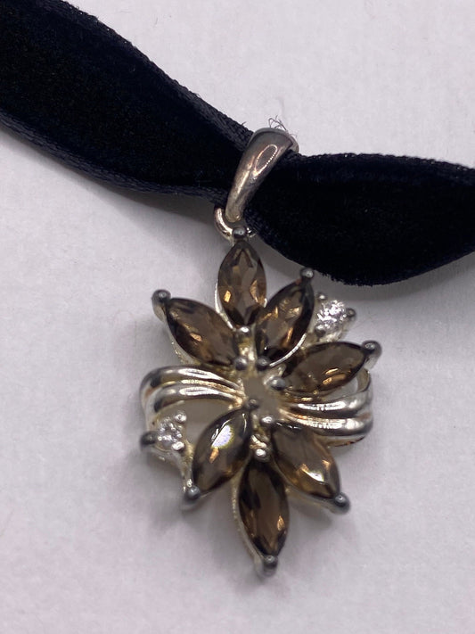 Vintage Smoky Topaz 925 Sterling Silver Necklace Choker Black Velevet Ribbon