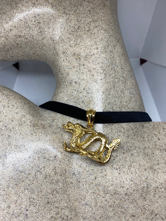 Vintage Golden Stainless Steel Gothic Celtic Dragon Pendant Necklace