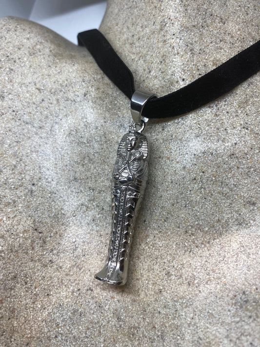 Vintage Silver Stainless Steel Egyptian Mummy Pendant Necklace