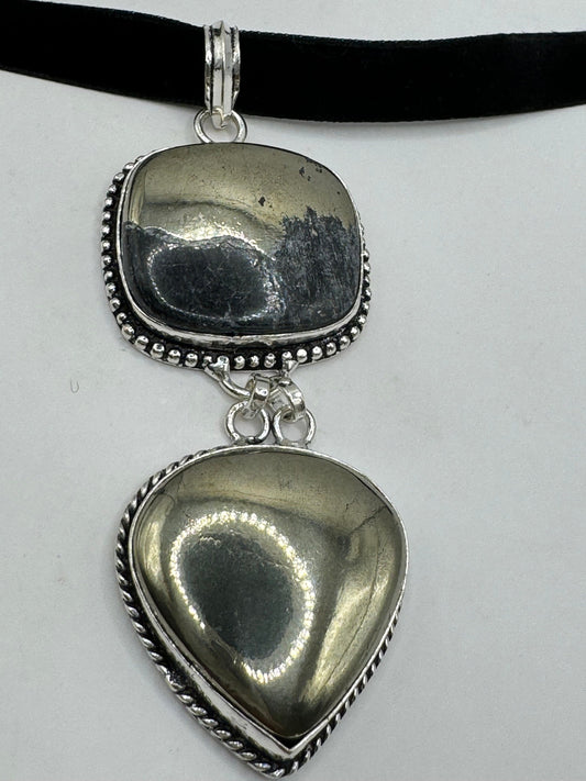 Vintage Silver Genuine Pyrite druzy Dangle Pendant Necklace