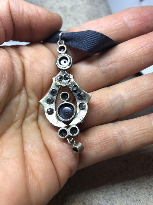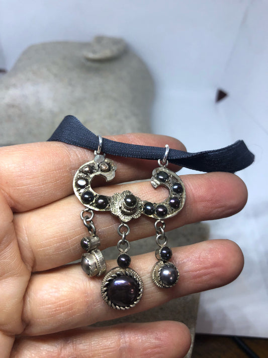 Vintage Black Pearl 925 Sterlng Silver Choker Necklace
