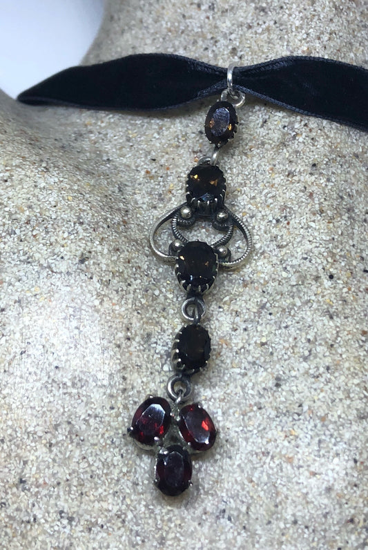 Bohemian Y Necklace Smoky Topaz Garnet in 925 Sterling Silver