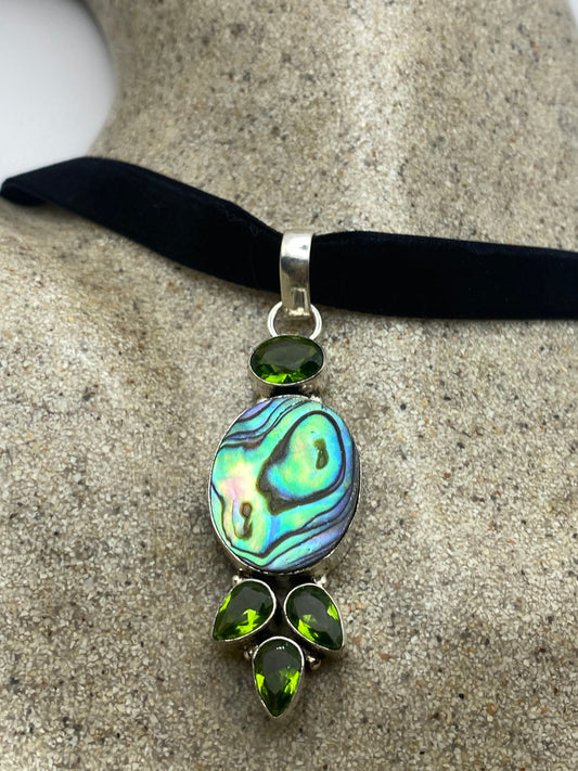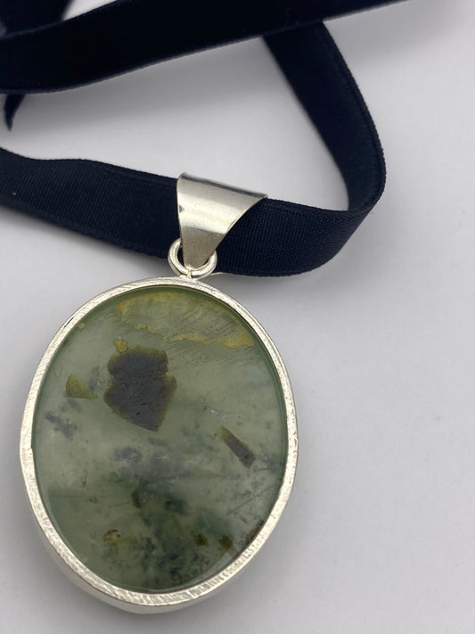 Vintage Green Aventurine Jade Choker Silver Finish Necklace Pendant