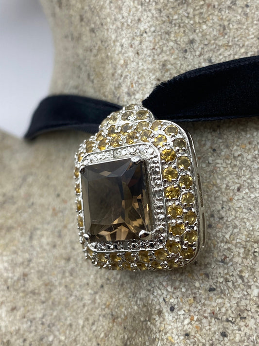Vintage Smoky Topaz Choker 925 Sterling Silver Pendant Necklace