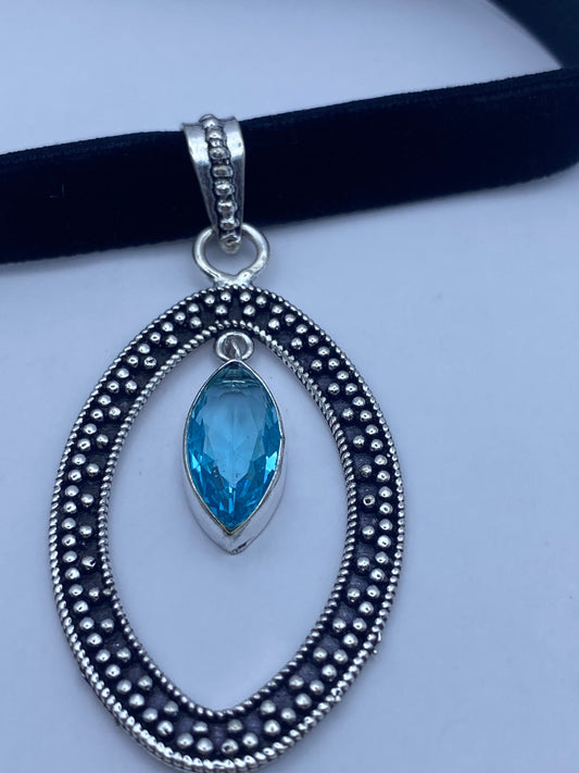 Vintage Blue Topaz Choker Silver Finished Necklace
