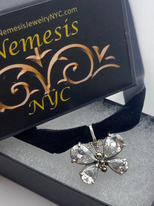 Vintage Crystal Marcasite 925 Sterling Silver Dragonfly Dangle Pendant Necklace
