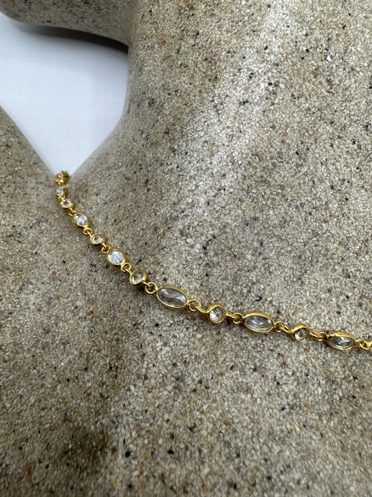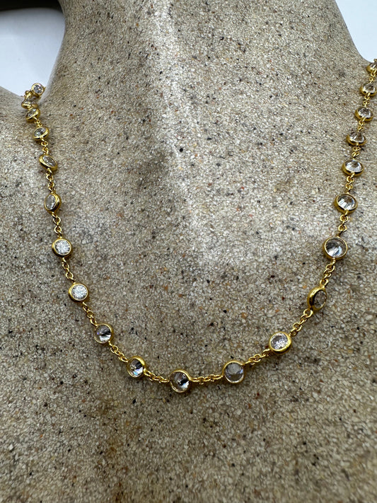 Vintage Crystal Cubic Zirconia Choker Necklace Golden 925 Sterling Silver 33 inches