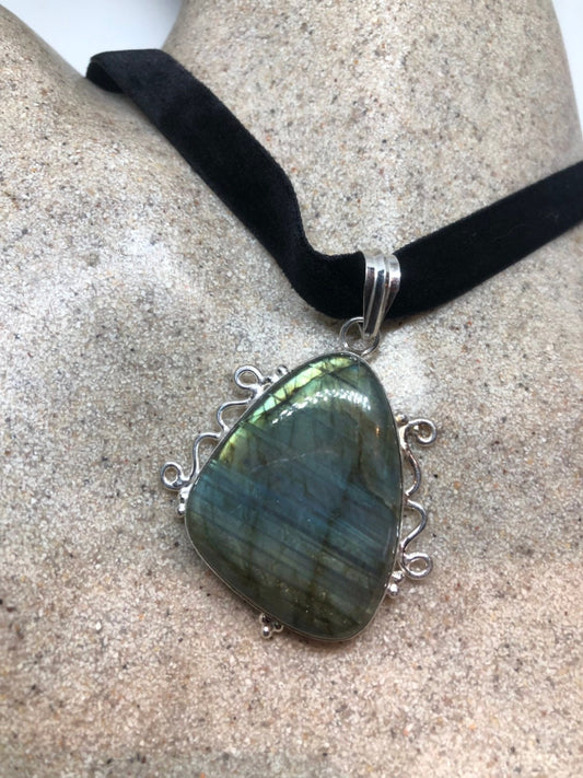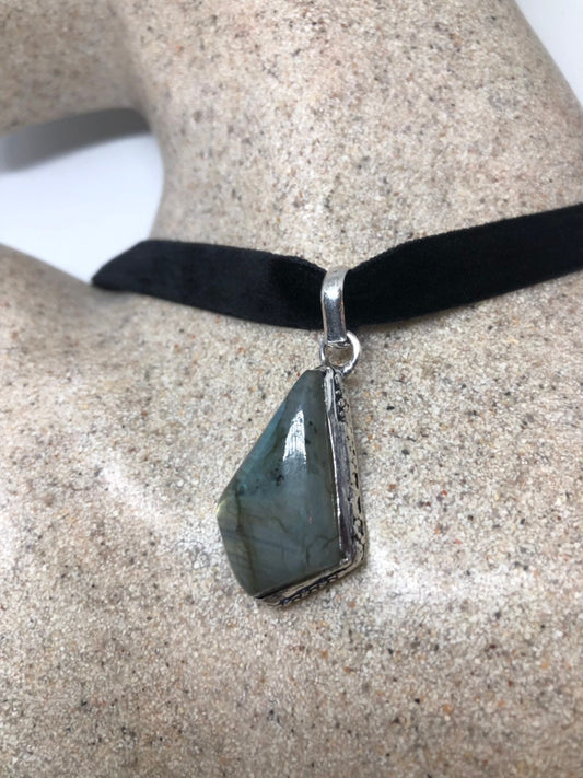 Vintage Silver Genuine Labradorite Gemstone Necklace.