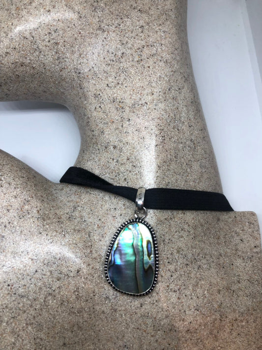 Blue Handmade Gothic Styled Silver Finished Genuine Facetted Antique Abalone Choker Necklace