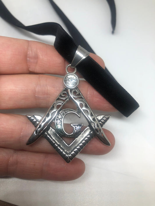 Vintage Stainless Steel Free Mason Pendant Necklace