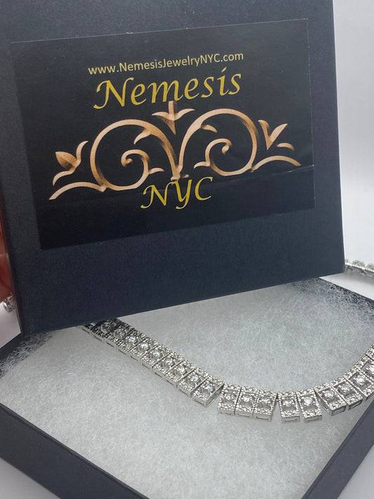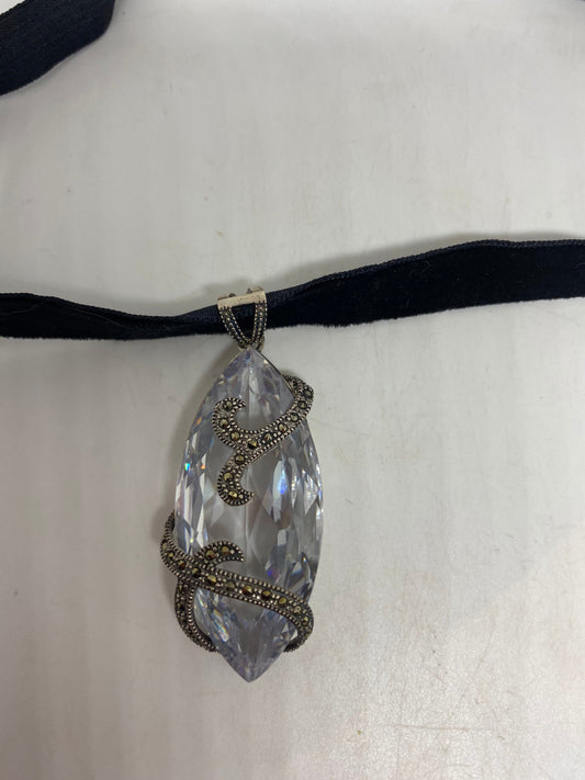 Vintage Clear Chrystal 925 Sterling Silver Collar Necklace