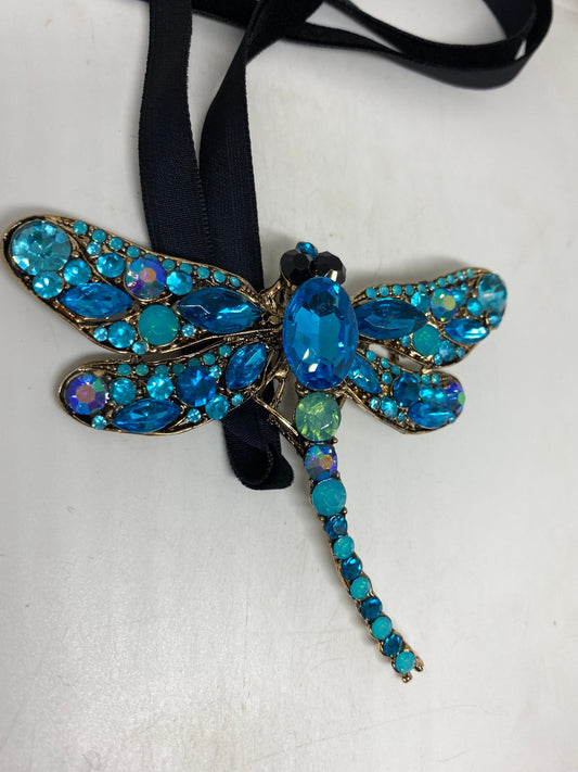 Blue Gothic Styled Austrian Crystal Dragonfly Choker Necklace pin