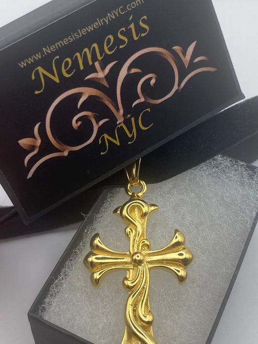 vintage Celtic Gold Stainless Steel Cross pendant necklace