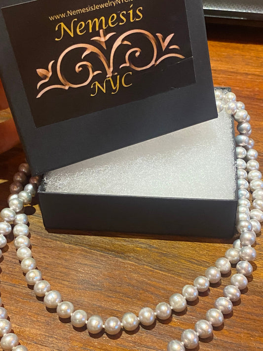 Vintage Hand Knotted Gray Pearl 16 inch double Necklace