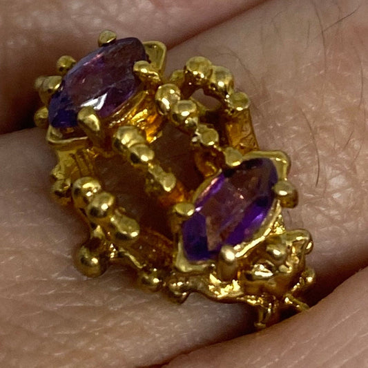 Vintage Handmade Genuine Purple Amethyst Filigree Setting 925 Sterling Silver Gothic Ring