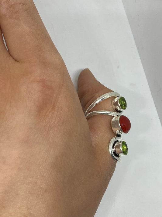 Vintage Peridot Red Silver Ring Adjustable