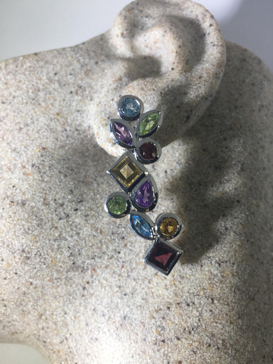 Vintage Genuine Citrine Blue Topaz Garnet and Amethyst Gemstone 925 Sterling Silver Deco Dangle Earrings