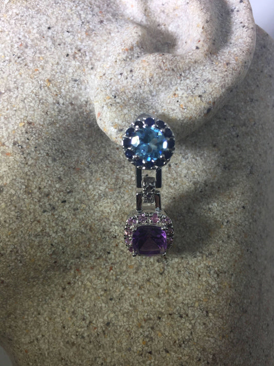 Vintage Genuine Amethyst and Blue Topaz 925 Sterling Silver Chandelier Dangle Earrings