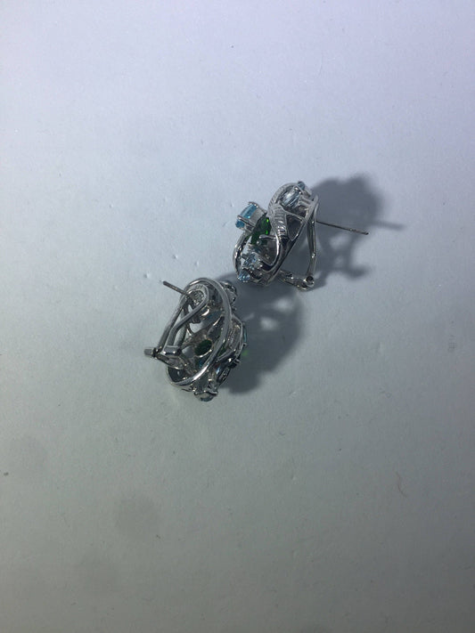 Vintage Handmade 925 Sterling Silver Blue Topaz Chrome Diopside button Earrings