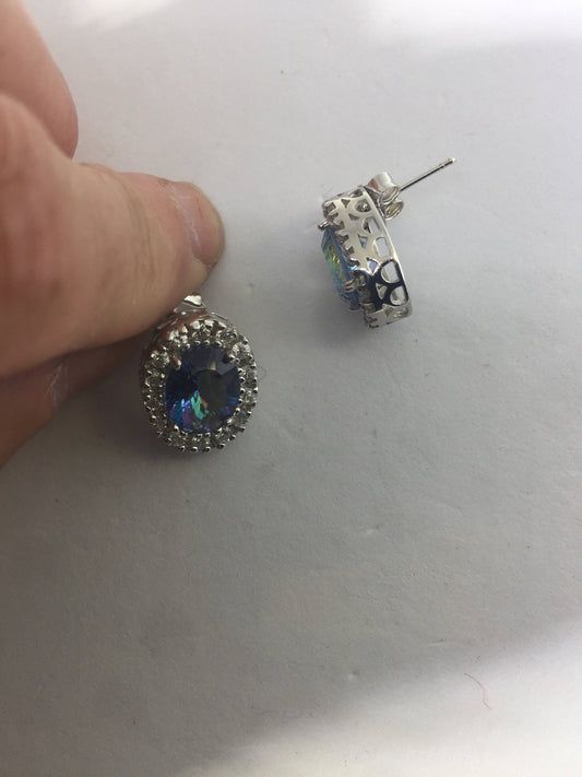 Vintage Handmade 925 Sterling Silver Deep Blue Mystic Topaz Stud Earrings