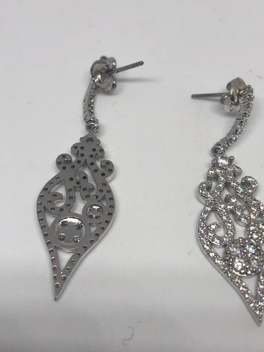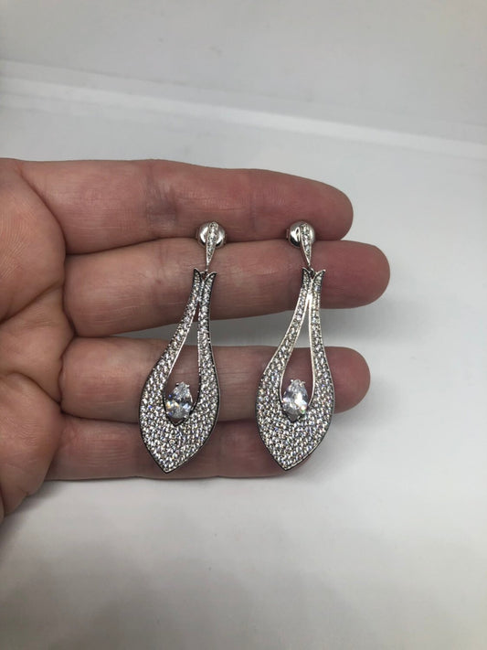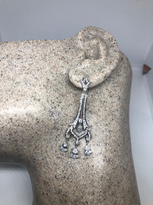 Vintage Chandelier Earrings Silver diamond look Austrian Crystal