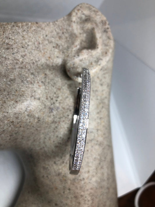 Vintage Hoop Chandelier Earrings Silver diamond look Austrian Crystal