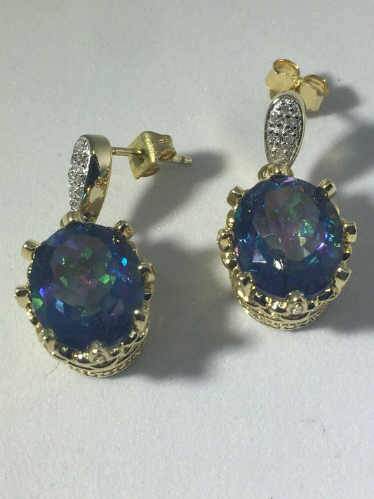 Vintage Handmade Golden 925 Sterling Silver Deep Blue Mystic Topaz Earrings