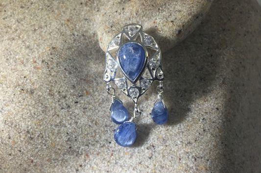 Vintage Blue Sapphire Chandelier Earrings 925 Sterling Silver