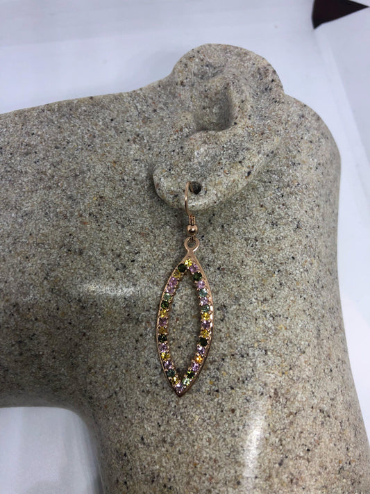Vintage Genuine Mixed Pink Color Tourmaline 925 Sterling Silver Golden Chandelier Dangle Earrings