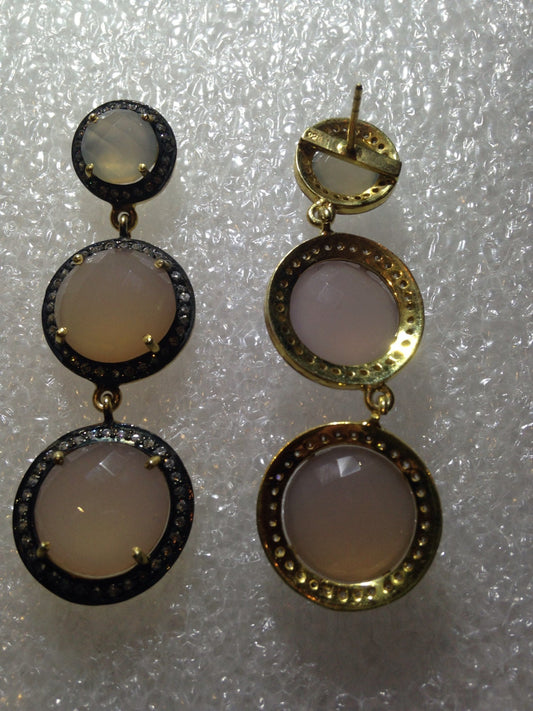 Vintage White Opal Earrings White Sapphire Golden 925 Sterling Silver