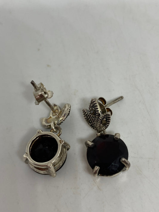 Vintage Earrings Marcasite Garnet 925 Sterling Silver Deco Dangle