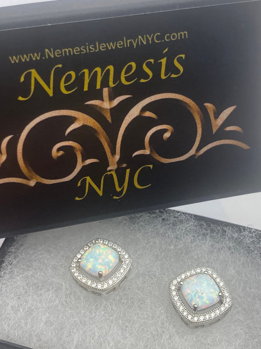 Vintage White Opal Earrings White Sapphire 925 Sterling Silver Dangle