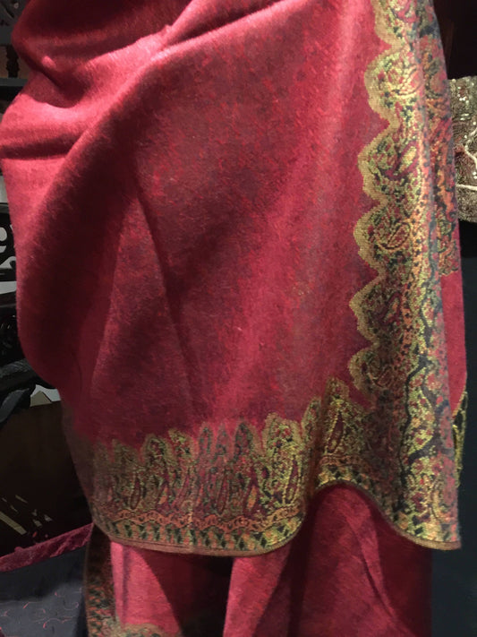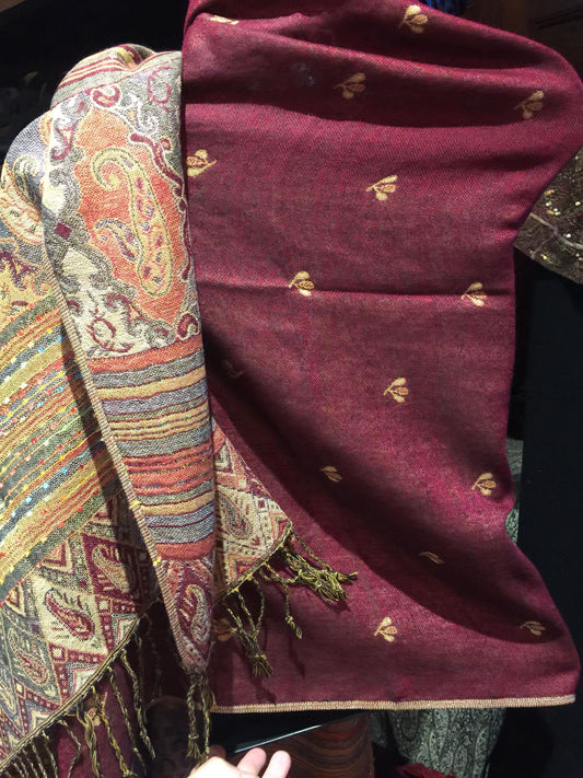 Vintage Burgundy Red Reversible Paisley Brocade Pashmina Scarf Wrap