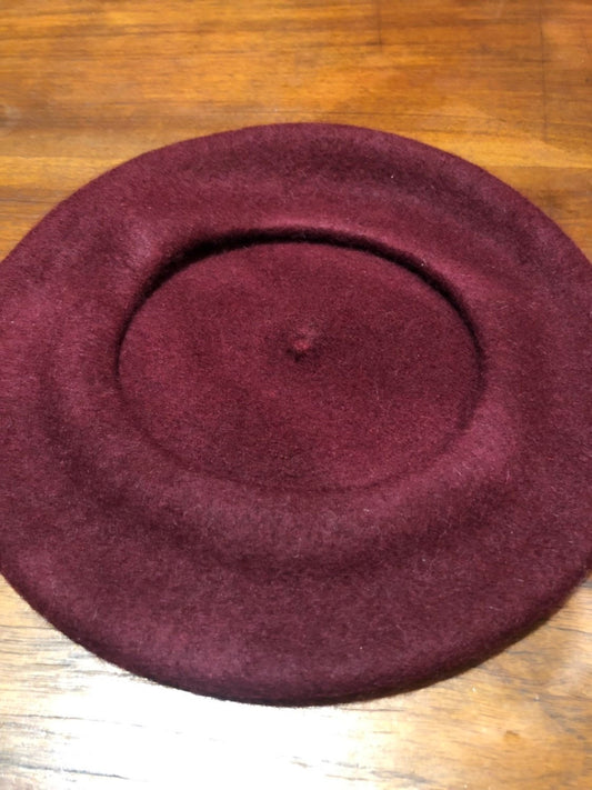 Vintage burgundy Wool Felt 10 in Beret Hat